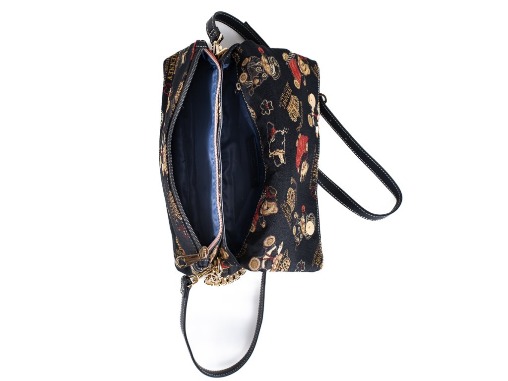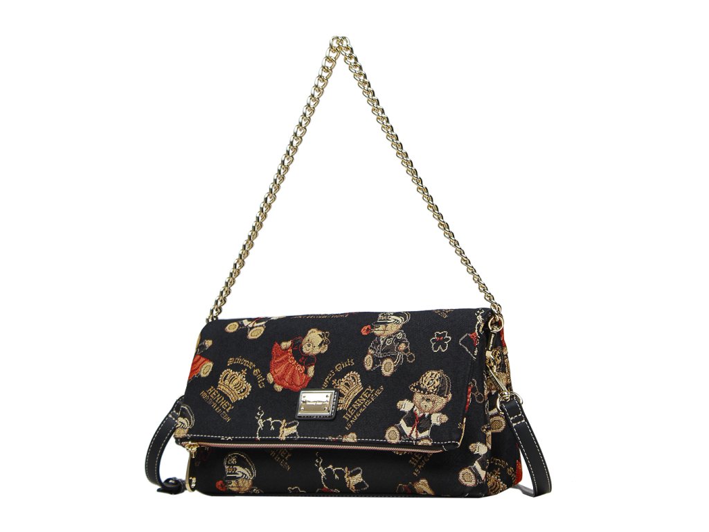 👑 Staň se královnou street stylu s touto crossbody kabelkou Henney Bear – motiv Crown Bear! Gobelínový vzor s medvídky v uniformách, korunkami a černozlatou kombinací přináší špetku britské noblesy do každého dne.