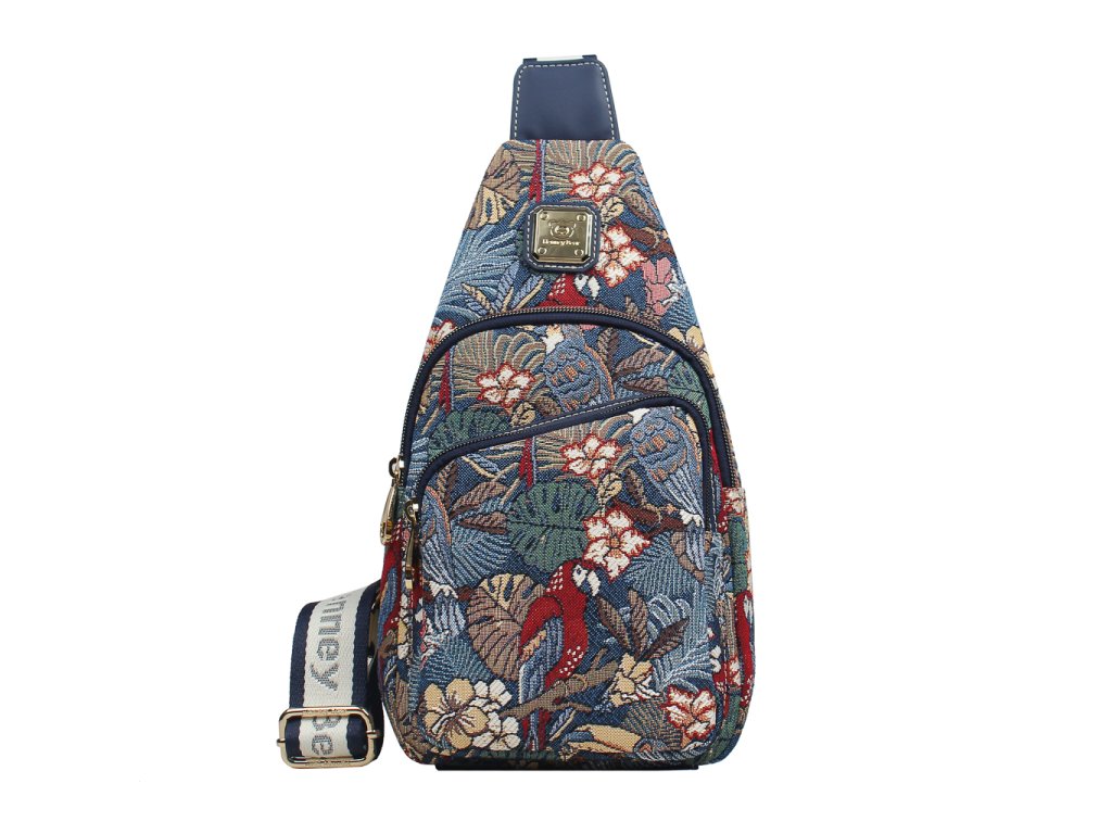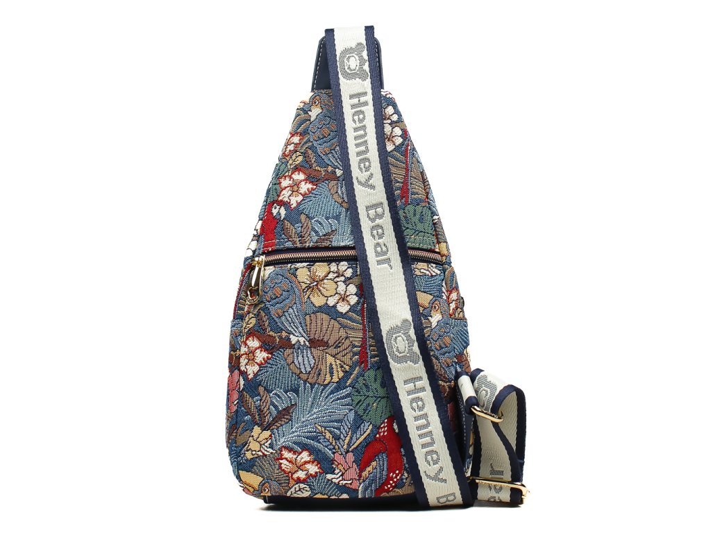 Henney Bear crossbody taška v designu Parrot Song s tropickým vzorem a pohodlným nošením. Pro ženy, které milují barvy, volnost a přírodu.