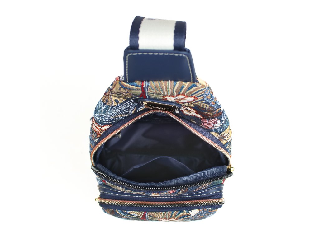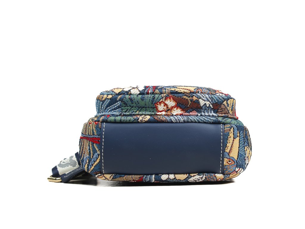 🎨 Design: Bohatý květinovo-papouščí motiv na kvalitním gobelínovém podkladu, doplněný o modré detaily z koženky a zlaté logo. Okouzlující a výjimečný design, který tě nenechá splynout s davem.