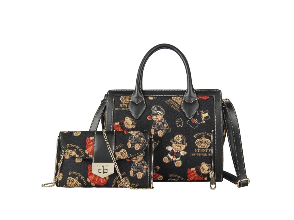 Henney Bear Crown Bear 3v1 👑 Kabelka, crossbody i mini taška dohromady. Elegantní gobelín, královský styl a praktičnost v každém detailu.