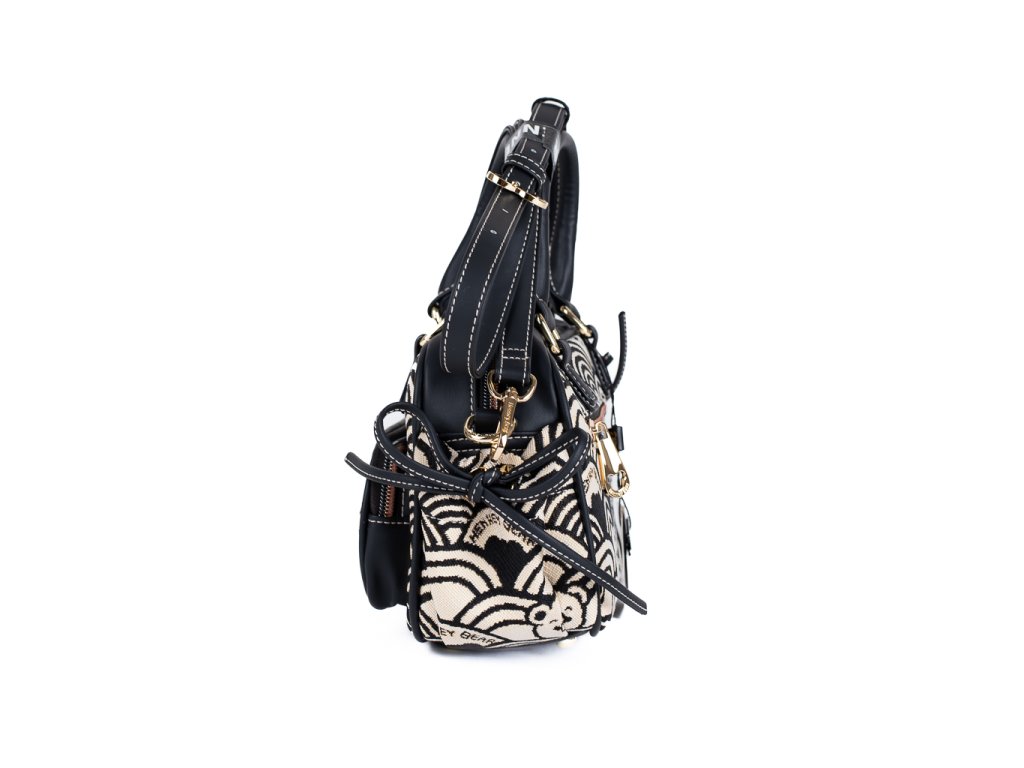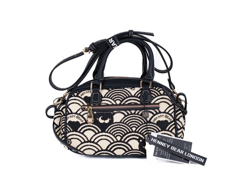 🌊 Kabelka Henney Bear s motivem Black White Wave oslní elegantním vlnovým vzorem s medvídky, který se odlišuje na první pohled. Kontrast černé a smetanové barvy vytváří šik vizuál vhodný jak pro minimalistky, tak milovnice výrazných doplňků.