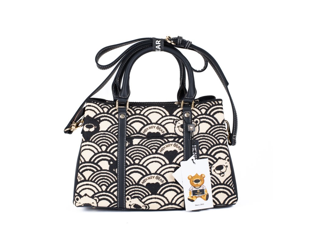 🖤 Elegantní, výrazná a ikonická – kabelka Henney Bear s motivem Black White Wave přináší jedinečný gobelínový vzor, který kombinuje minimalistický styl s nádechem hravosti. Vlnky v černobílém provedení tvoří harmonické pozadí pro roztomilé medvídky, kteří nenápadně probleskují vzorem.