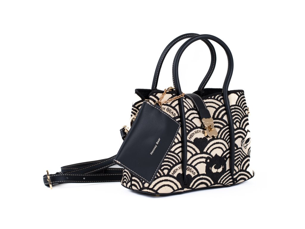 🌊 Pro milovnice minimalistického designu s šarmem! Kabelka Henney Bear Black White Wave zaujme černo-bílým vlnkovým motivem s medvídky, který působí zároveň klasicky i hravě.