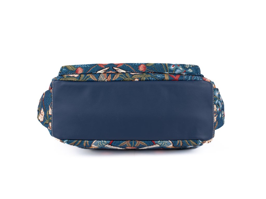 🎨 Design: Gobelínový vzor s kolibříky v letu mezi květinami na modrém pozadí. Jemné barvy v kombinaci s kontrastním lemem a kovovým logem tvoří harmonický celek.