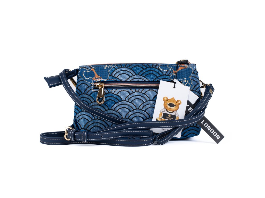 Modrý gobelínový podklad s vlnkovým vzorem a jemnými kresbami medvídků vytváří harmonický design, který působí svěže a moderně. Tato kabelka je jako dělaná pro každodenní nošení – praktická, lehká a naprosto nepřehlédnutelná.