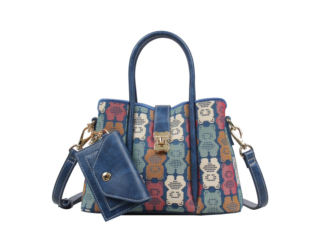 🧱 Vneste do každodenního outfitu barvu, rytmus a originalitu s kabelkou Henney Bear Brick Bear, která zaujme symetrickým vzorem medvídků v cihlovém stylu.