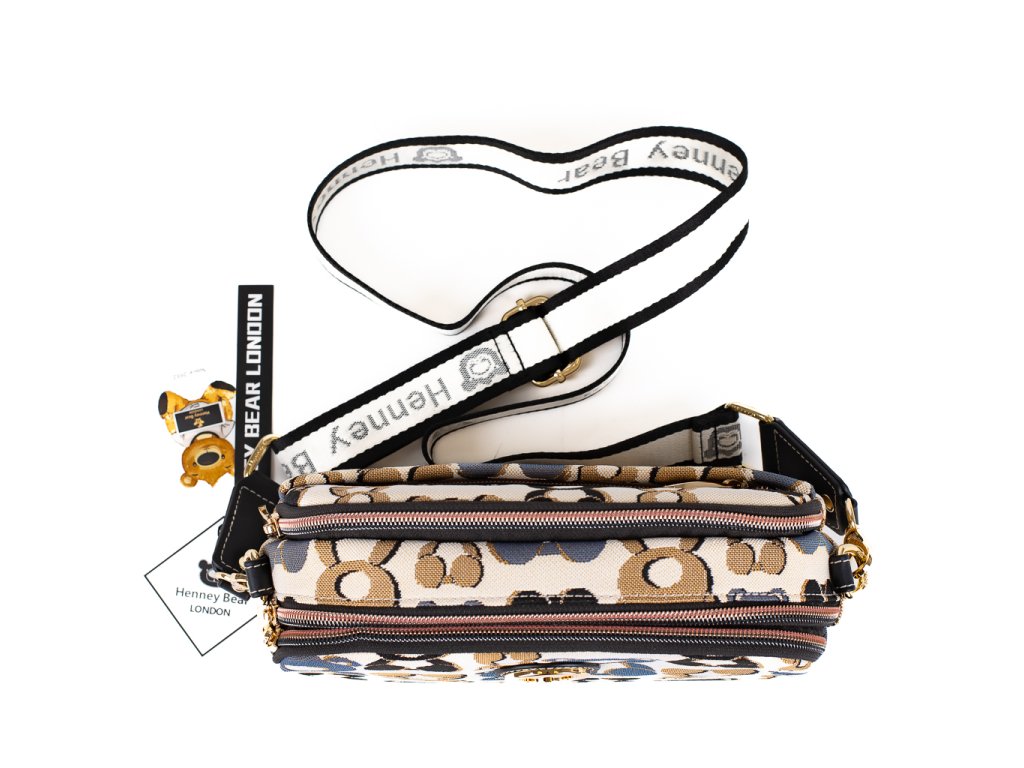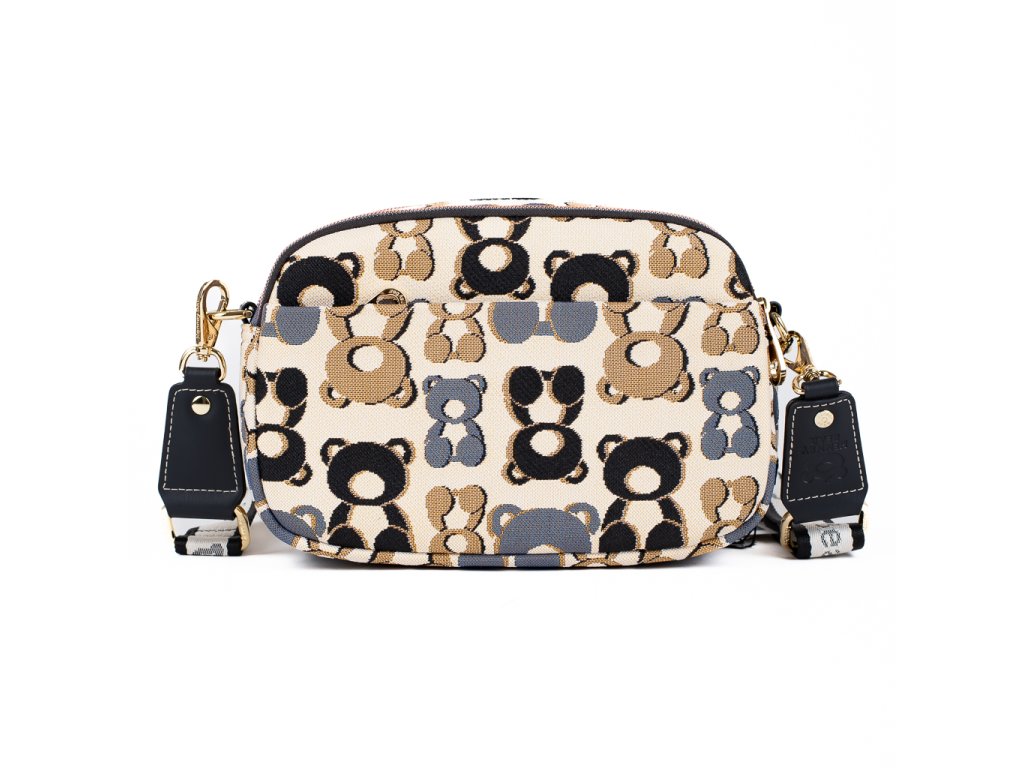 Crossbody kabelka Henney Bear ve vzoru BWG Bear – moderní gobelín s medvídky v neutrálních tónech. Hravý styl pro každý den s nádechem originality.