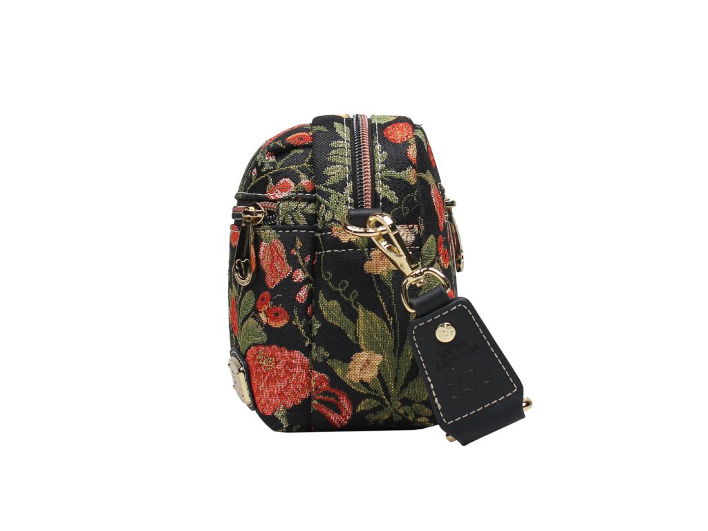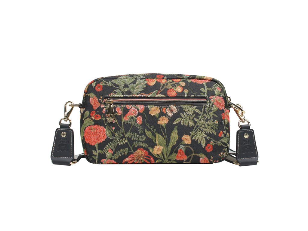 🎨 Design: Detailní gobelínový vzor s květy a listy, které vypadají jako z malované louky. Elegantní černý základ dává florálním barvám vyniknout a dodává kabelce nadčasový vzhled.