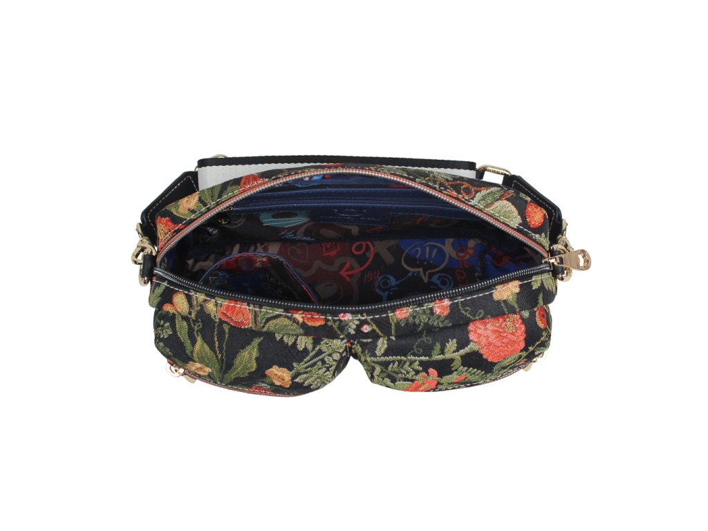 Crossbody kabelka Henney Bear Floral Summer Black okouzlí svým botanickým motivem na tmavém podkladu – ideální pro ženy, které milují romantiku, eleganci a pohodlí v jednom.