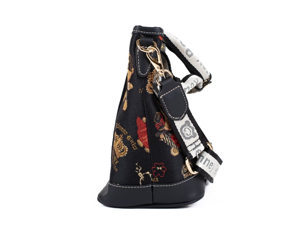 Kabelka s potiskem Crown Bear přináší hravou oslavu britské estetiky – medvídci v korunách, královské prvky a elegantní černý základ z ní dělají kousek, který přitáhne pohledy.