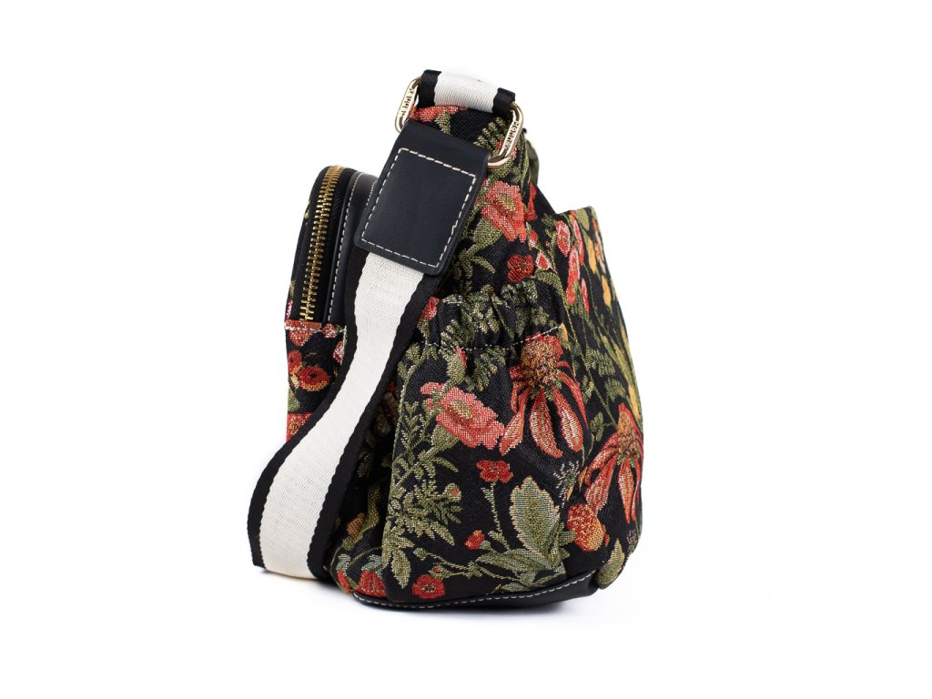 Elegantní crossbody kabelka s motivem letních květin – Floral Summer Black přináší romantiku a praktičnost v jednom kousku.