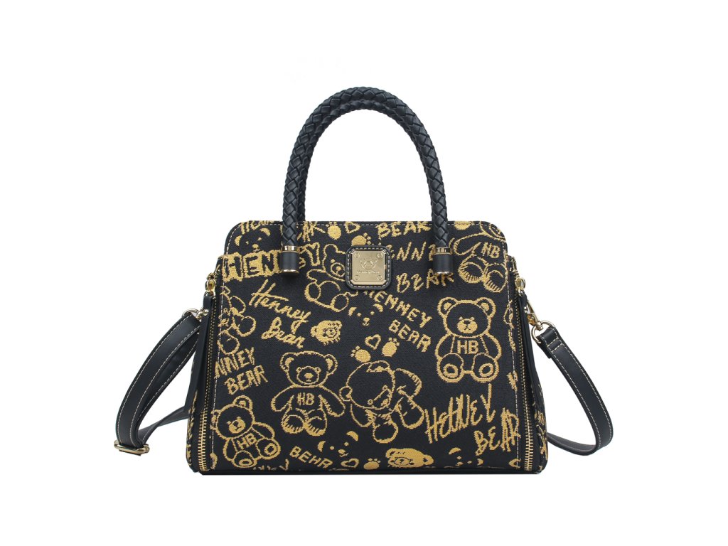 Stylová kabelka Henney Bear Gold Time ✨ s gobelínovým vzorem a rozměry 28×12×22 cm. Ikonický design, praktičnost i veganské materiály.