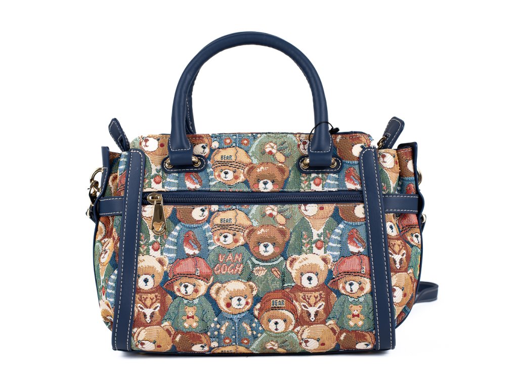Top-handle kabelka Henney Bear ve vzoru Green Bear – veselý gobelínový motiv, hravé detaily a dostatek prostoru pro styl i praktičnost.