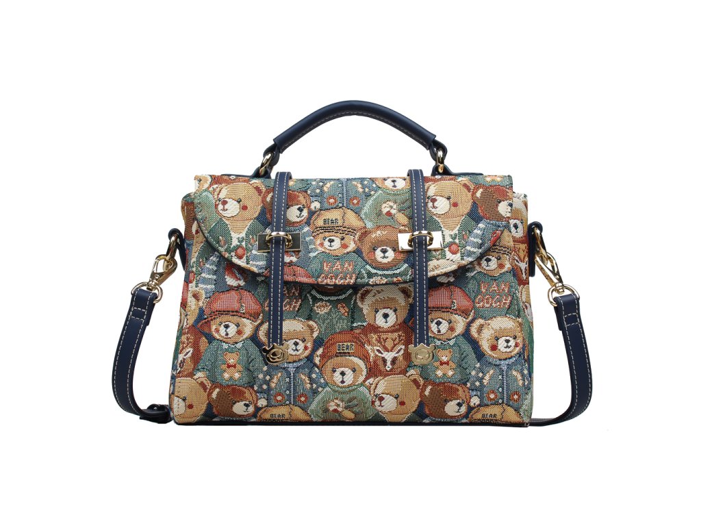 🌿 Kabelka Henney Bear Green Bear je šperkem mezi doplňky – originální gobelínový vzor s veselými medvídky přináší do tvého stylu hravost i špetku nostalgie.