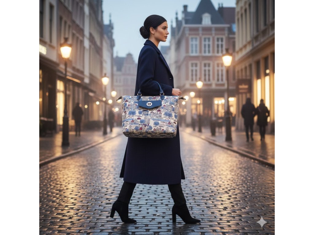 👜 Gobelín s detailním potiskem evropských domků, mostů a aut v odstínech modré a červené vyniká svou hravostí i nostalgií. Rozměry 52 × 15 × 31 cm, pevná ucha a nastavitelný popruh ti poskytnou maximální pohodlí.