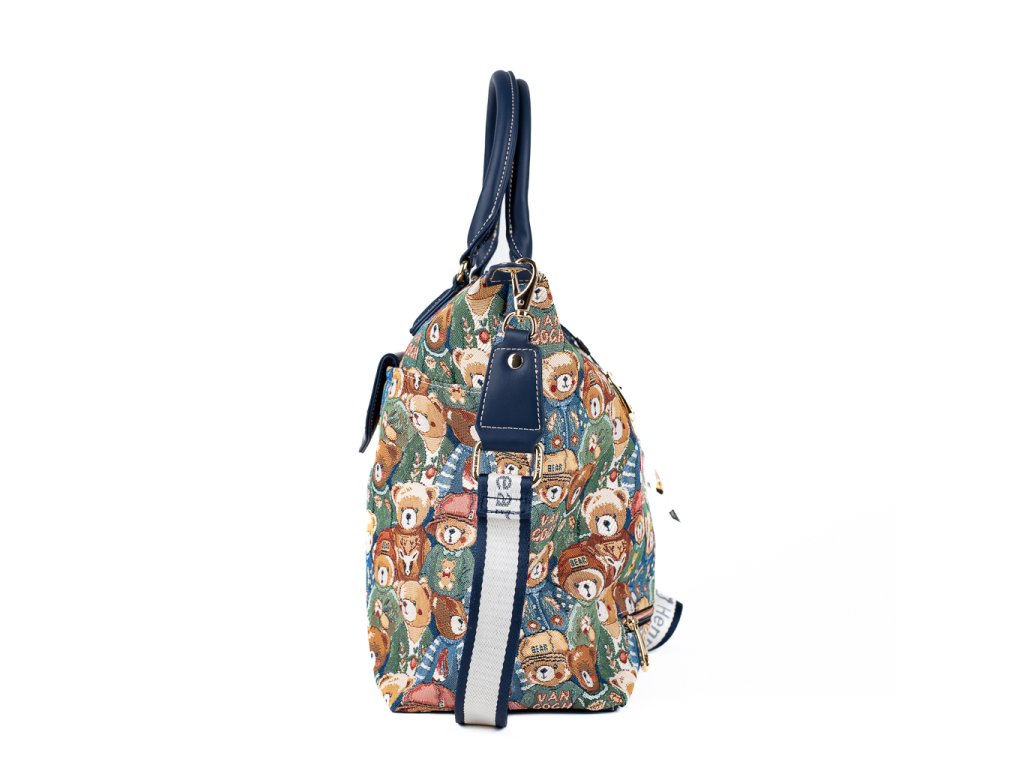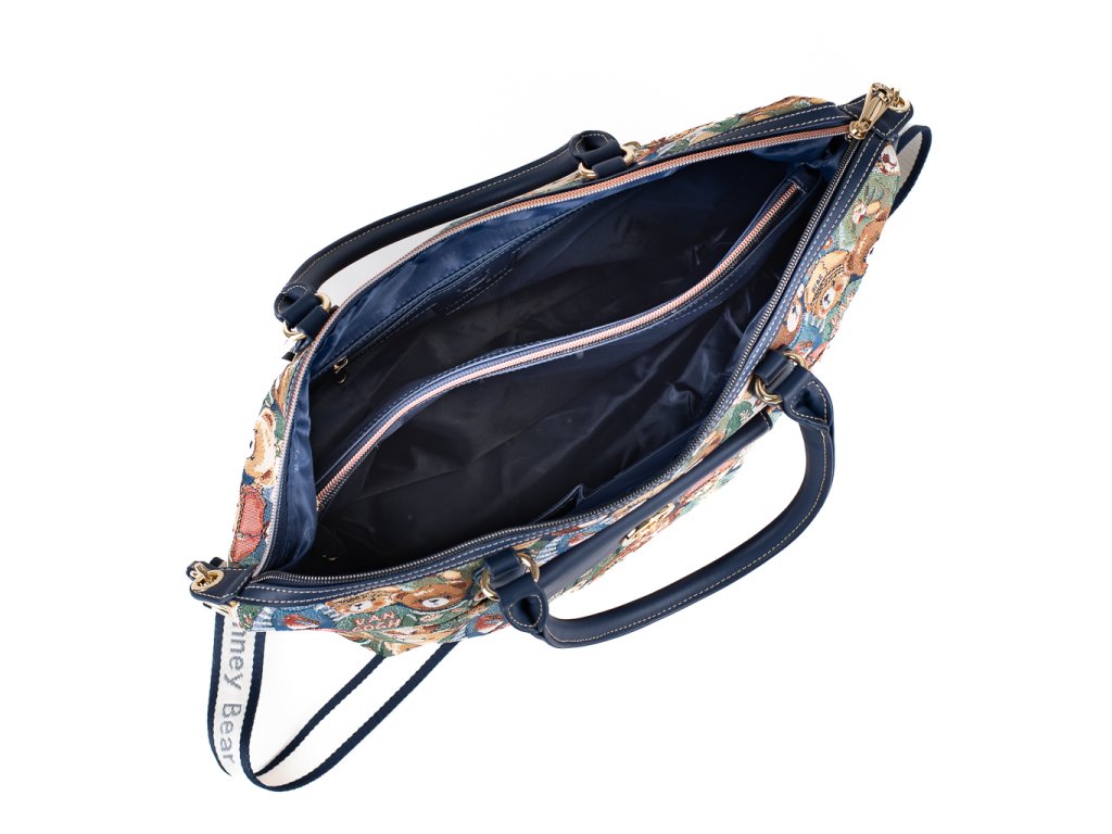 👜 Shopper s rozměry 52 × 15 × 31 cm ti poskytne dostatek prostoru pro všechny věci – od laptopu až po nákupy. Má pevné uši, nastavitelný popruh a přední kapsičku se zapínáním s medvědím logem, které z něj dělá ikonický doplněk.