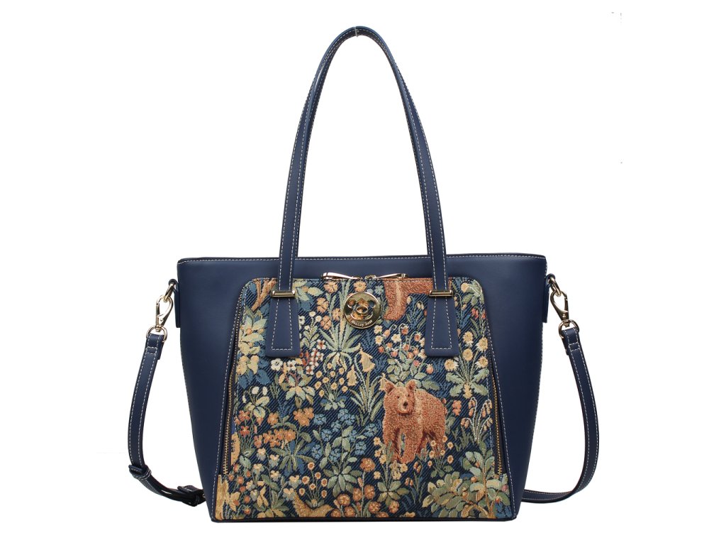 Shopper kabelka Henney Bear ve vzoru Walking the Forest – pohádkový gobelínový motiv, prostorný formát a veganské zpracování pro každodenní styl s příběhem.