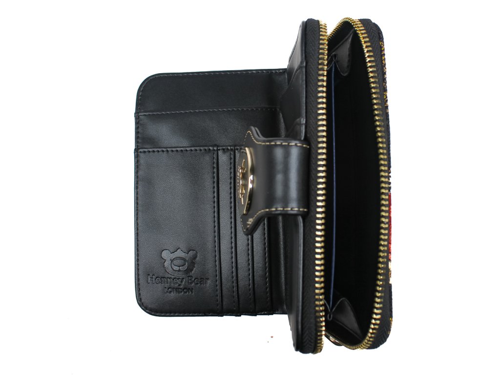 Objev šarm britského stylu s peněženkou Henney Bear Crown Bear, která okouzlí zlatavými korunkami, veselými medvídky v červeném i ikonickým potiskem s nápisy. Elegantní černý podklad jí dodává noblesu, zatímco hravé prvky vykouzlí úsměv každý den.