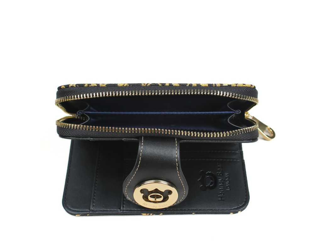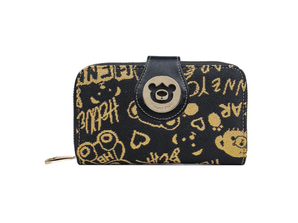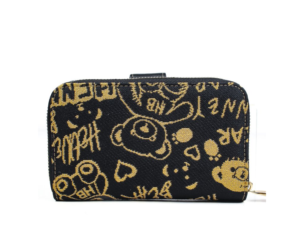 Zahal svůj styl do odvážné originality s peněženkou Henney Bear Gold Time – výrazný černý podklad a zlatý potisk s ručně kreslenými motivy medvídků vytváří hravý a neotřelý look. Ideální pro každého, kdo chce svým doplňkem vyjádřit osobnost.