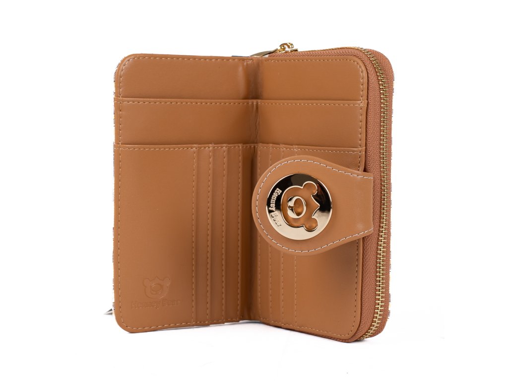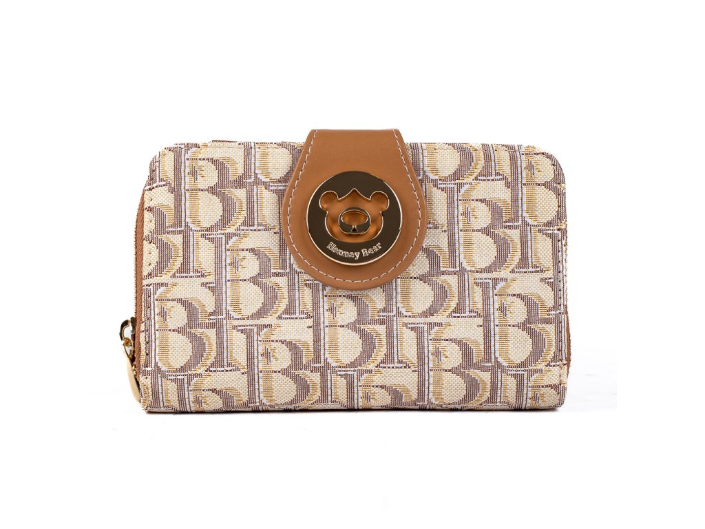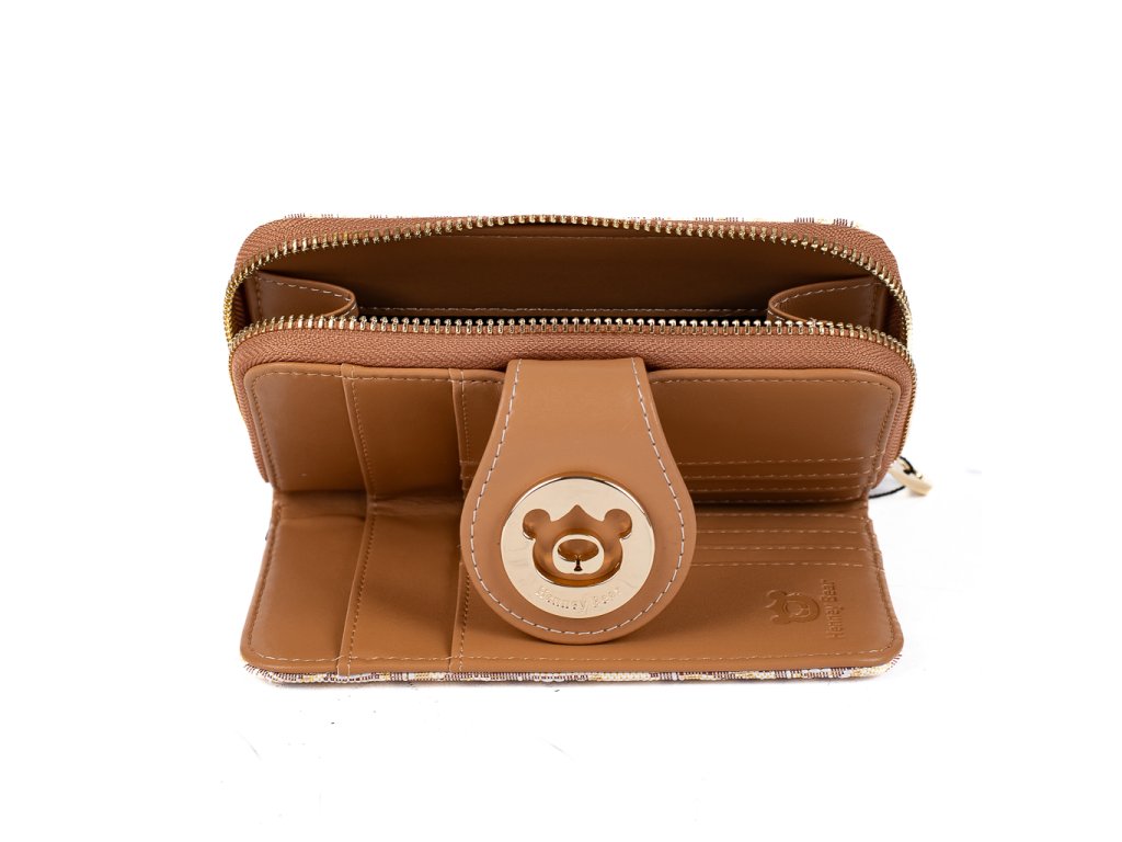 Peněženka HB Milk Tea s decentním potiskem a medvědím logem v elegantní zlaté – stylový doplněk, který si zamiluješ pro každý den.