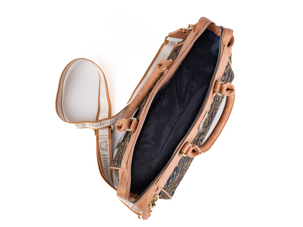 📜 Styl, který má svůj příběh. Kabelka Henney Bear Cuneiform je inspirovaná kouzlem starověkých znaků – jejich tajemství nyní neseš s sebou! Výrazný vzor, kvalitní zpracování a kombinace tmavě modrého podkladu s teplými karamelovými tóny vytváří dojem luxusu i originality.