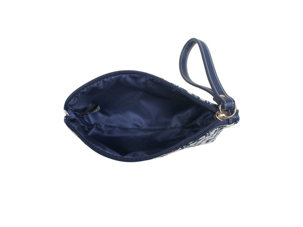 Stylové psaníčko na zip Henney Bear HB Blue s ikonickým monogramem, poutkem na zápěstí a ideální velikostí na karty, hotovost i drobnosti.