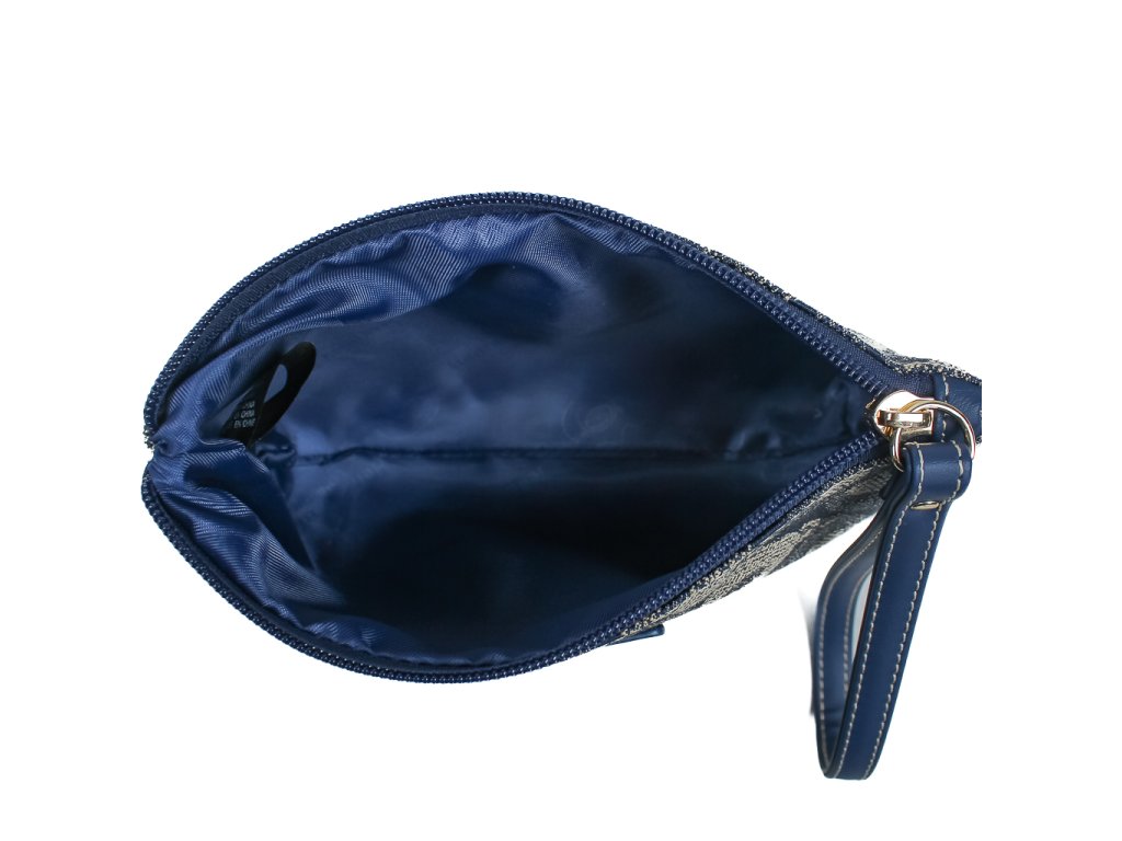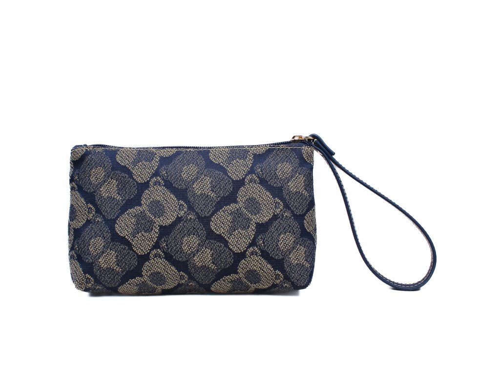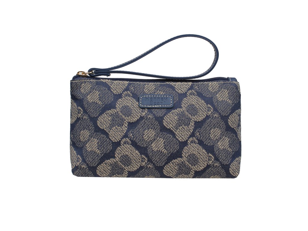 Stylové psaníčko na zip Shadow Bear Blue s medvědím vzorem, praktickým poutkem a dostatkem prostoru pro karty, hotovost i klíče.