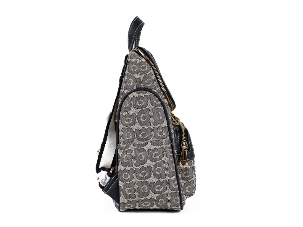 🎨 Design, který ladí s každým outfitem: Výrazný, ale vkusný vzor na gobelínovém podkladu krásně doplňují černé koženkové detaily a zlaté zapínání s medvědí hlavou – symbol značky Henney Bear.