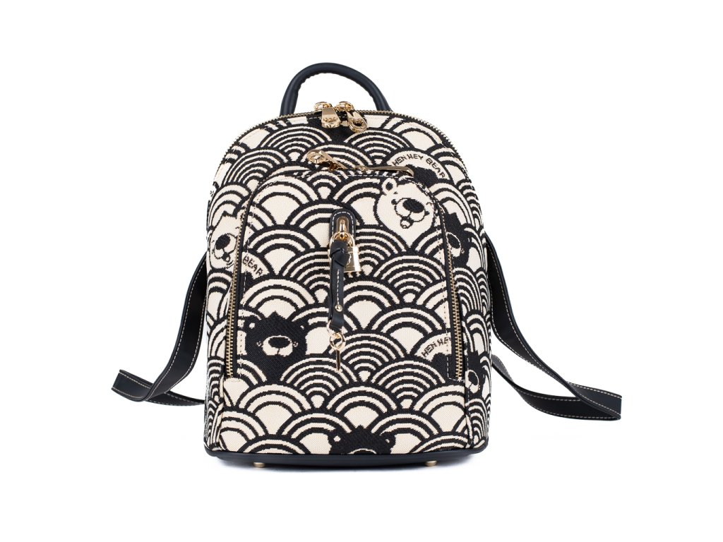 Originální batoh Henney Bear v černobílém provedení – stylový kontrast, hravý vzor a minimalistická praktičnost v jednom.