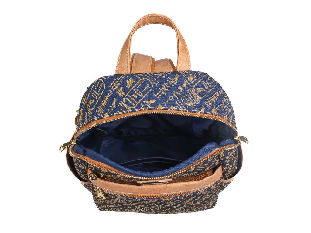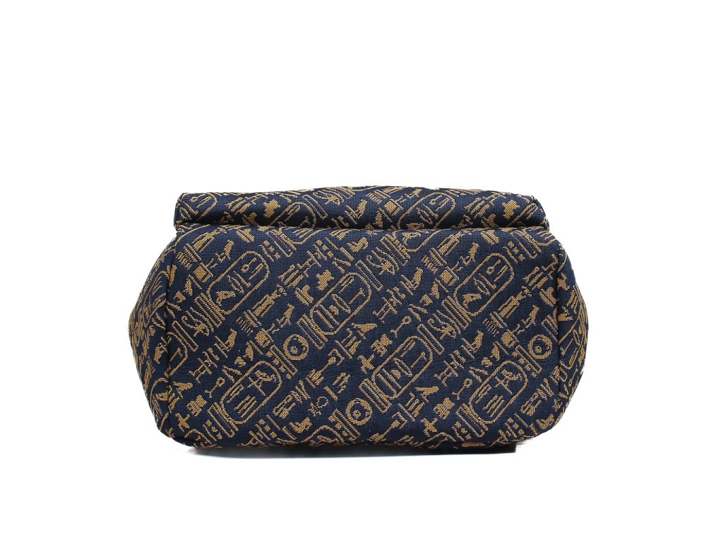 🎨 Design: Gobelínový materiál s výrazným cuneiformním potiskem doplněný koženkovými prvky v přírodní barvěvytváří styl, který zaujme na první pohled.