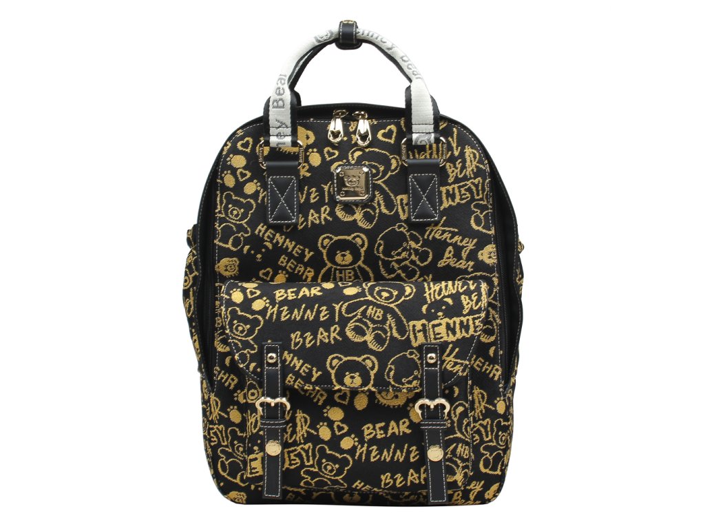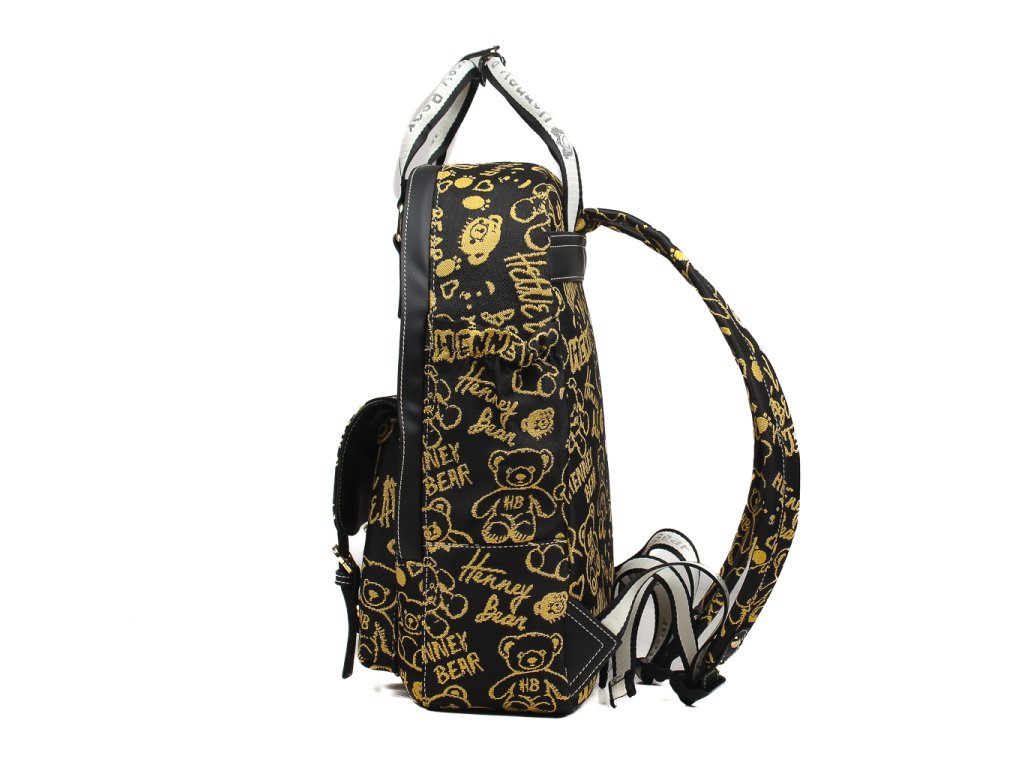 Stylový batoh Henney Bear Gold Time s černozlatým gobelínovým motivem medvídků. Luxusní doplněk na každý den, který rozzáří tvůj outfit!
