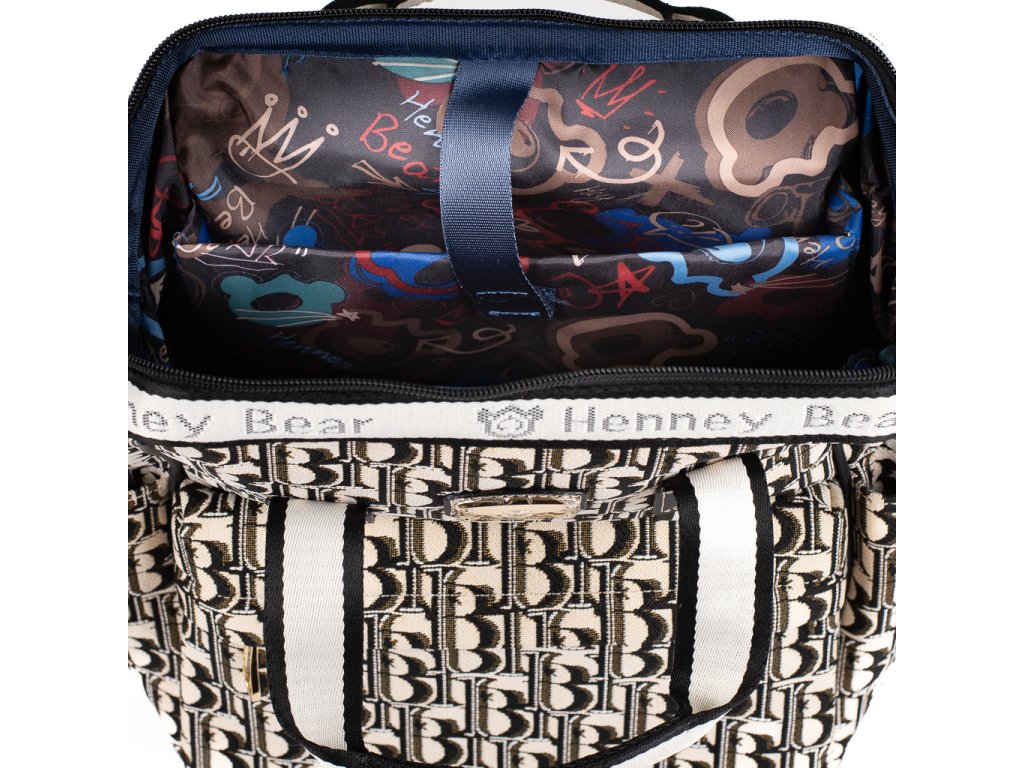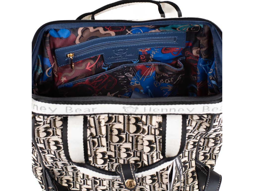 🎒 Batoh Henney Bear HB Black je symbolem spojení praktického designu a ikonického gobelínového vzoru. Výrazný monogram HB na kontrastním černobílém podkladu působí nadčasově a sofistikovaně – přesně tak, aby tě doprovodil do práce, školy i na víkendové výlety.