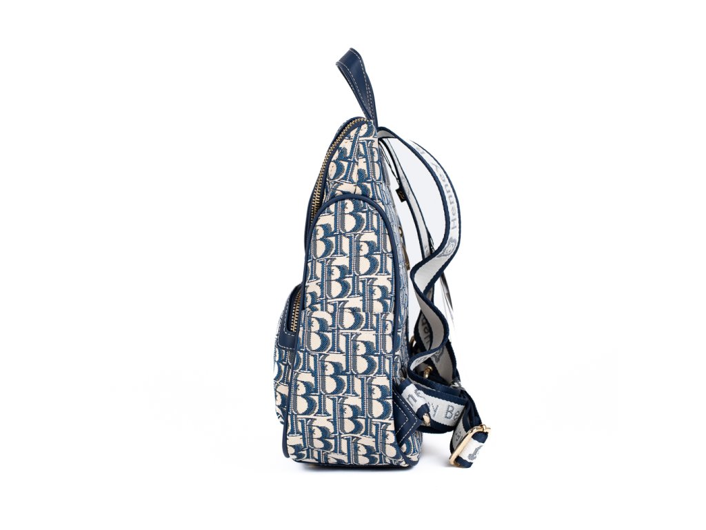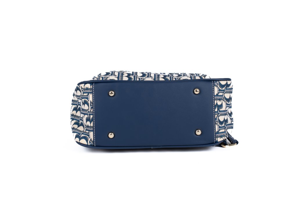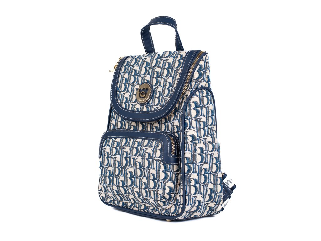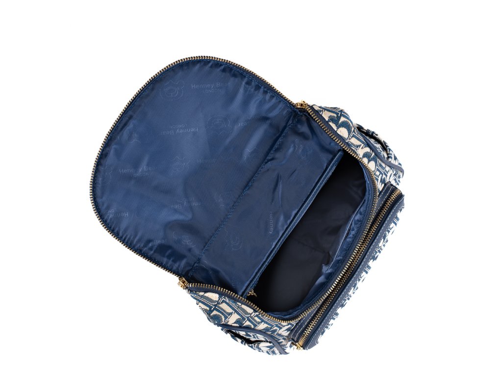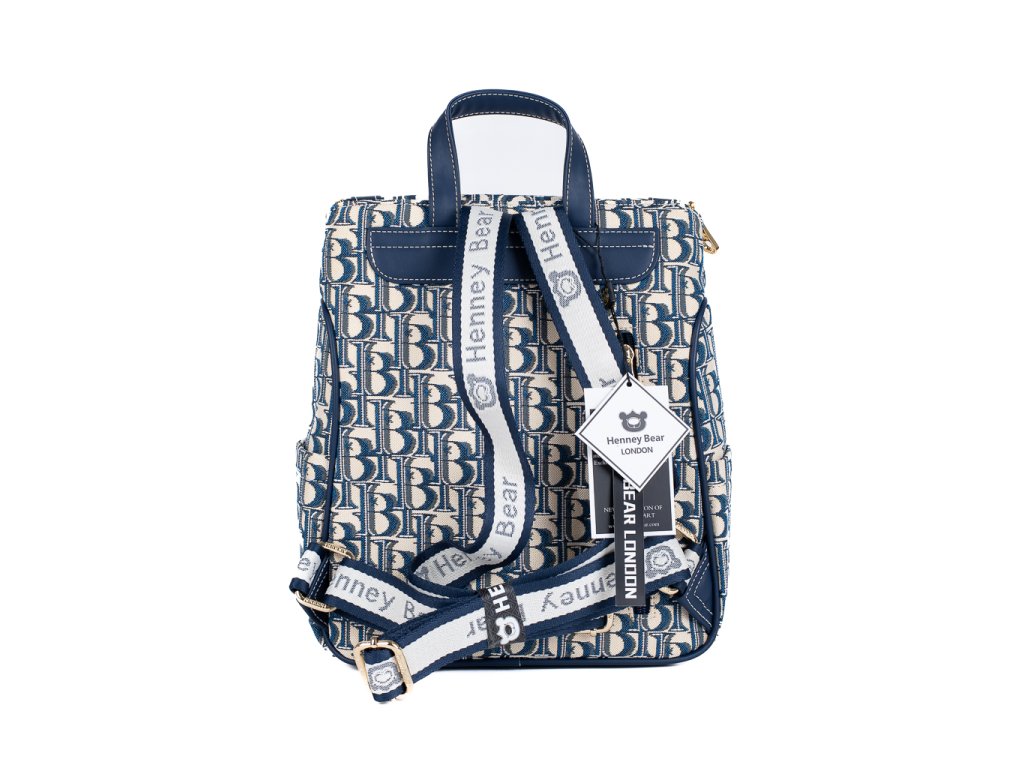 Batoh Henney Bear ve vzoru HB Blue – stylový monogramový gobelín, praktický tvar a zapínání na klopu, ideální do města i na volný čas.