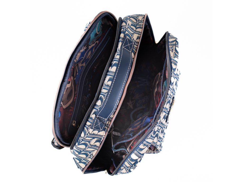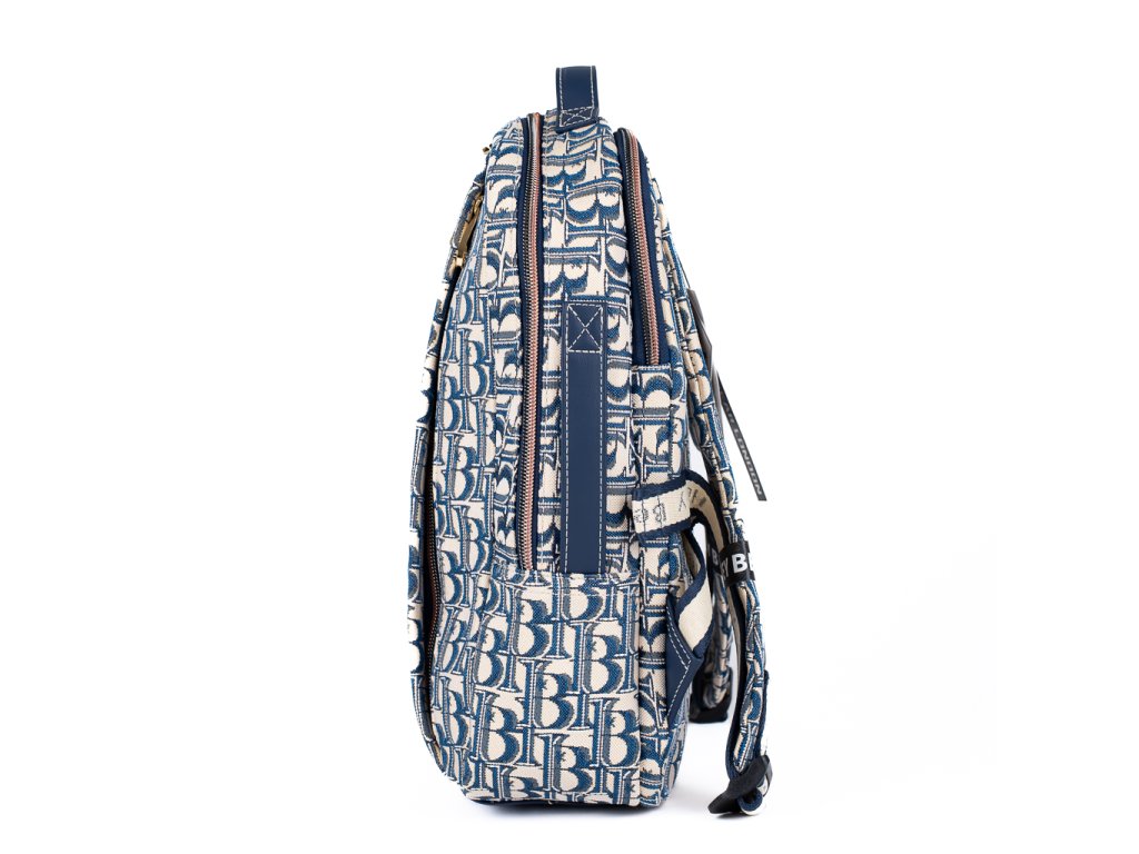 ✨ Elegantní gobelínový materiál s výrazným monogramem v kombinaci s pevnou konstrukcí z něj dělá ideálního společníka do města 🏙️, do práce 💼 i na volný čas 🌿. Zipy, které ladí s kovovým štítkem značky, dodávají batohu sofistikovaný vzhled.