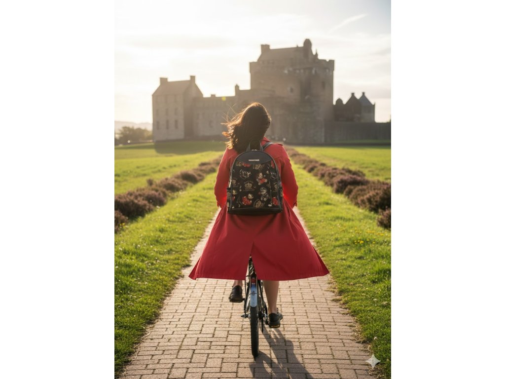 S rozměry 31 × 15 × 35,5 cm nabízí dostatek prostoru pro každodenní nezbytnosti i pohodlné nošení díky polstrovaným popruhům a bočním kapsám na láhev nebo drobnosti. Perfektní kombinace stylu, funkčnosti a osobitosti.