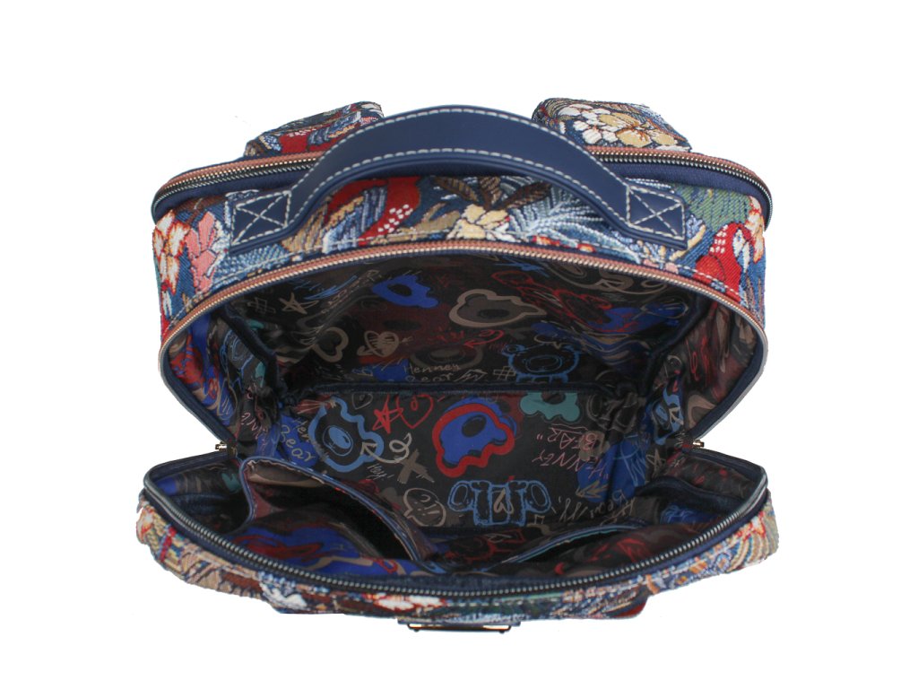 Batoh Henney Bear Parrot Song je designový klenot, který tě přenese do exotické zahrady plné květin a papoušků. 🦜🌺