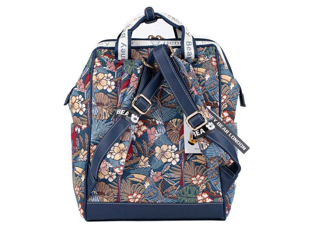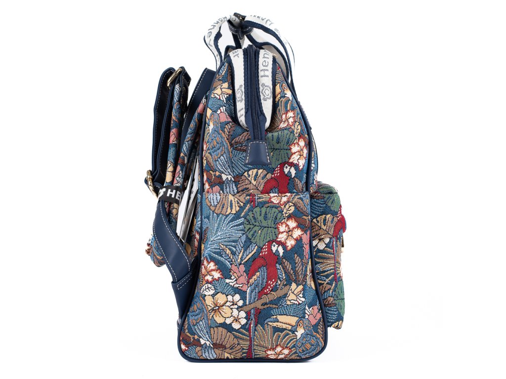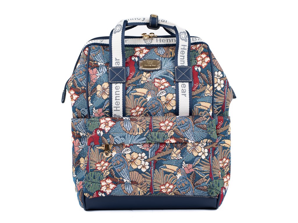 Batoh Henney Bear Parrot Song 34×17×34 cm 🦜🌺 originální gobelín, exotický motiv a dostatek prostoru pro tvůj stylový den.